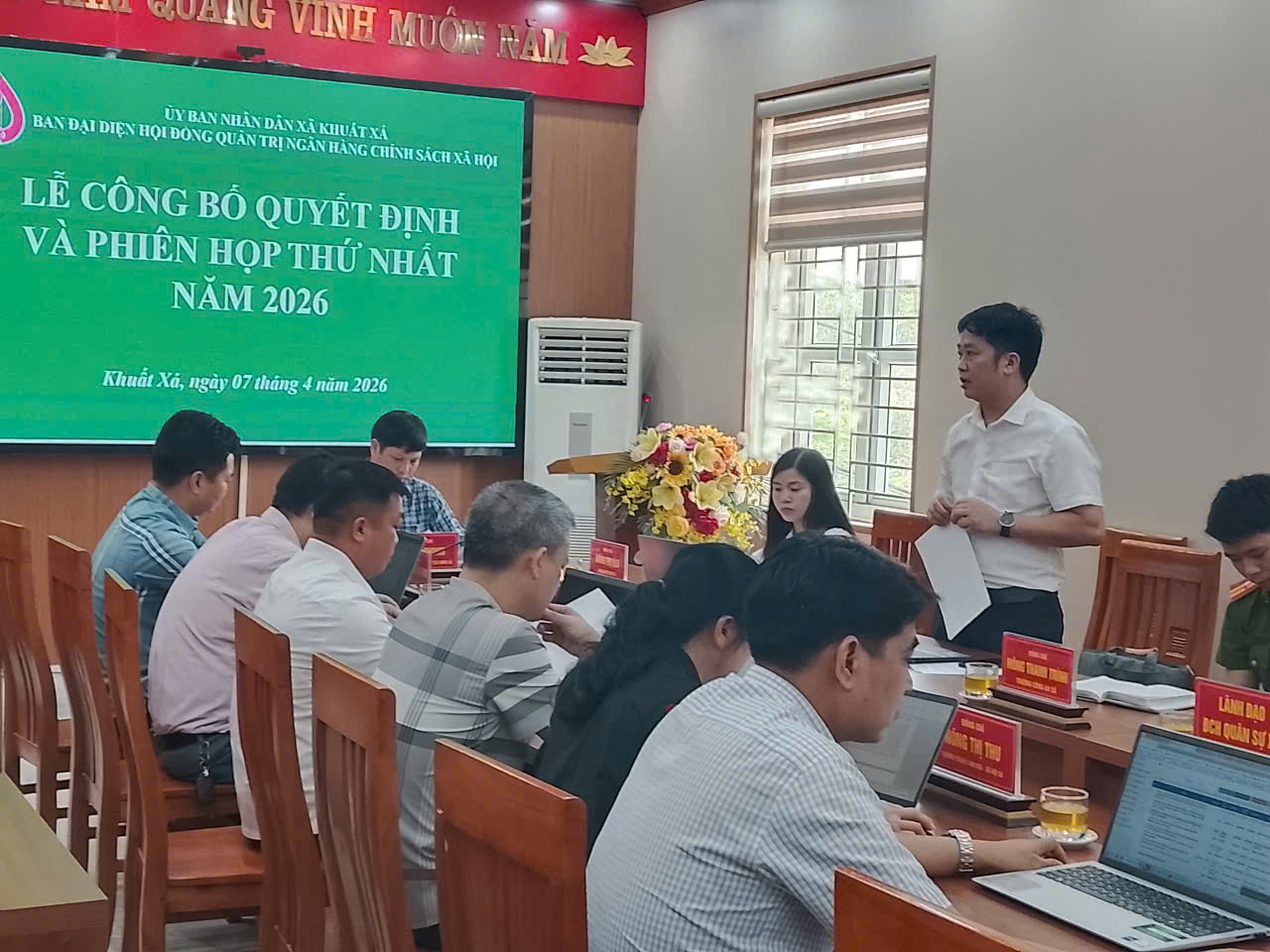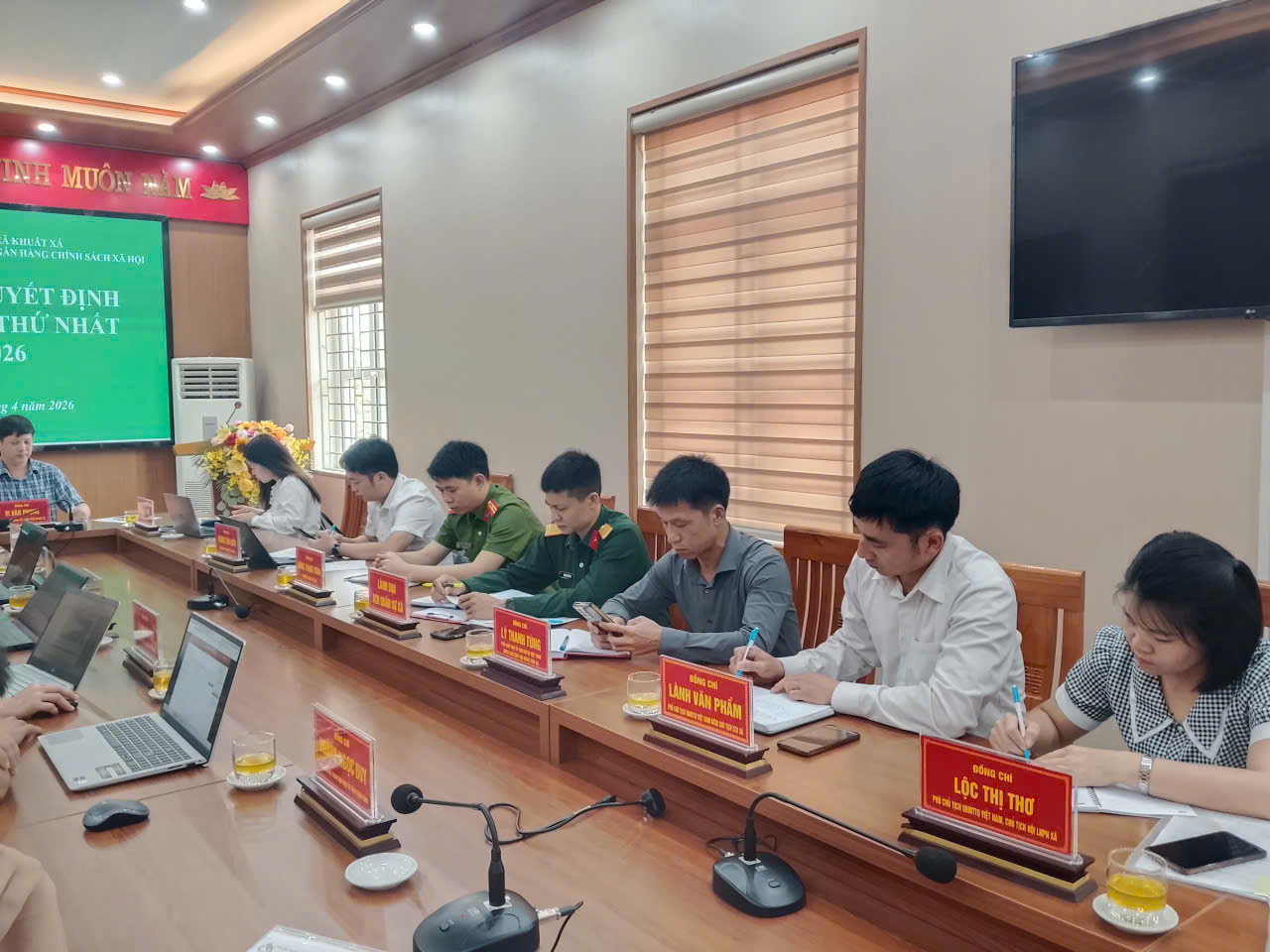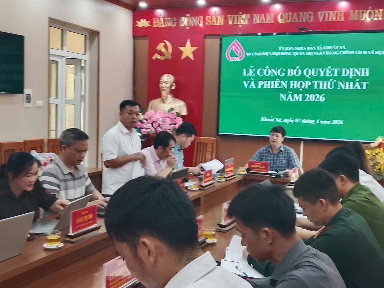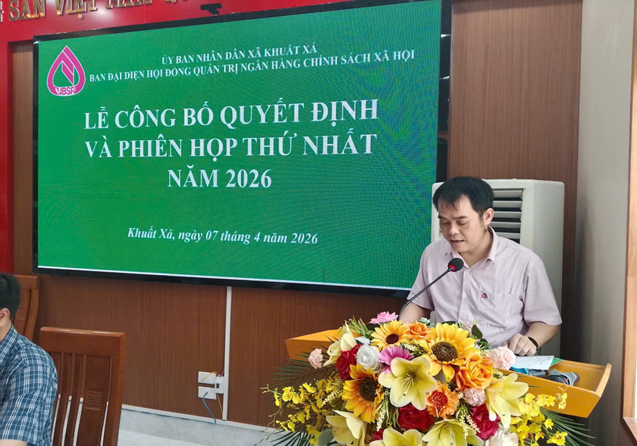 Ngày 07/4/2026, Ban đại diện HĐQT NHCSXH xã Khuất Xá tổ chức phiên họp thứ nhất. Dự có đồng chí Vi Văn Phong, Phó Bí thư Đảng ủy, Chủ tịch UBND xã, Trưởng Ban đại diện Hội đồng quản trị NHCSXH xã Khuất Xá; lãnh đạo HĐND, Ủy ban MTTQ Việt Nam xã; đại diện Phòng giao dịch NHCSXH Lộc Bình cùng các thành viên Ban đại diện và lãnh đạo các ban, ngành, đoàn thể trên địa bàn.