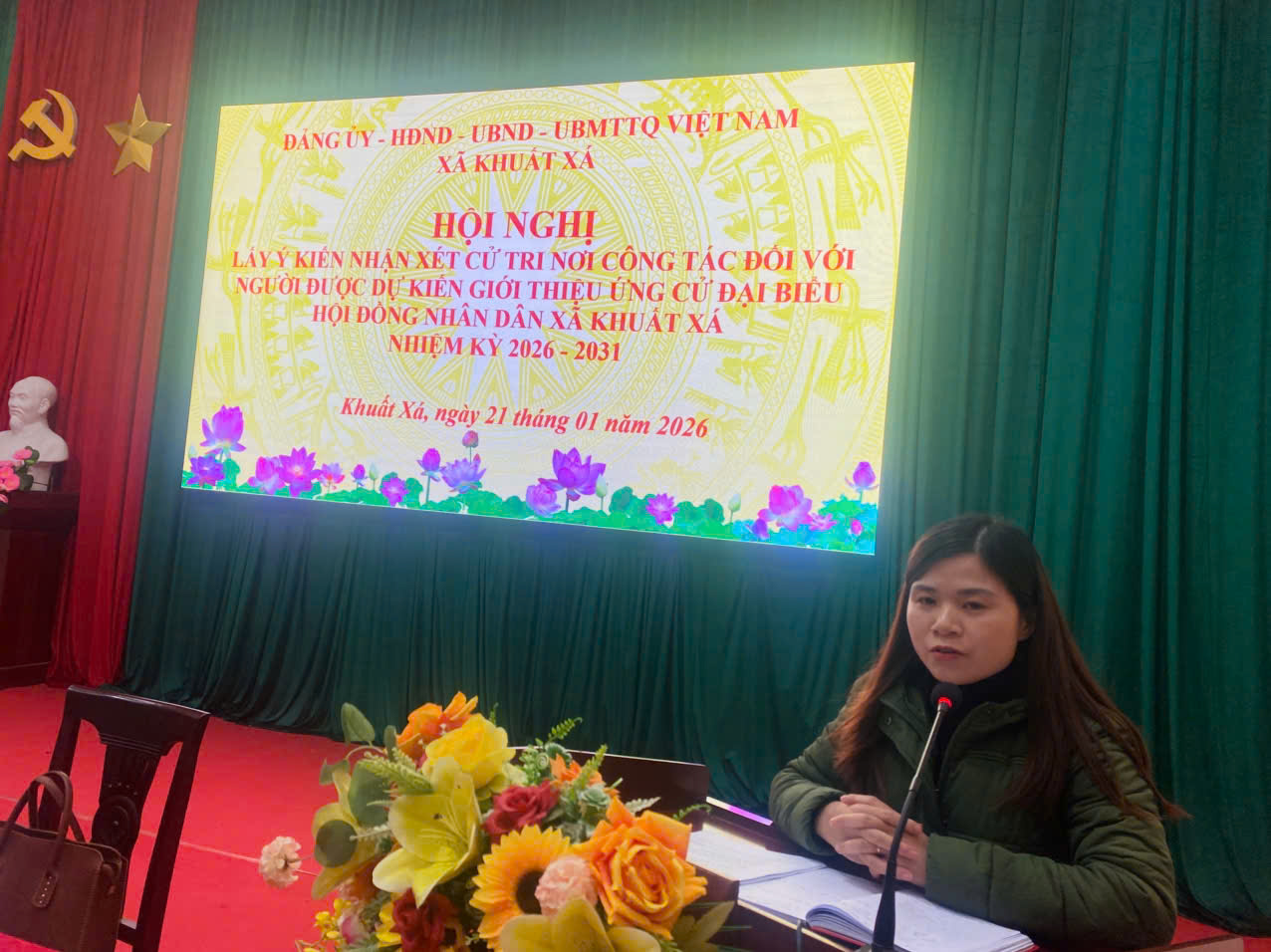 Thực hiện quy trình hiệp thương theo Luật Bầu cử đại biểu Quốc hội và đại biểu Hội đồng nhân dân, chiều ngày 21/01/2026, Đảng ủy – HĐND – UBND – Ủy ban MTTQ Việt Nam xã Khuất Xá đã phối hợp tổ chức Hội nghị lấy ý kiến nhận xét của cử tri nơi công tác đối với người được dự kiến giới thiệu ứng cử đại biểu HĐND xã Khuất Xá nhiệm kỳ 2026 – 2031.