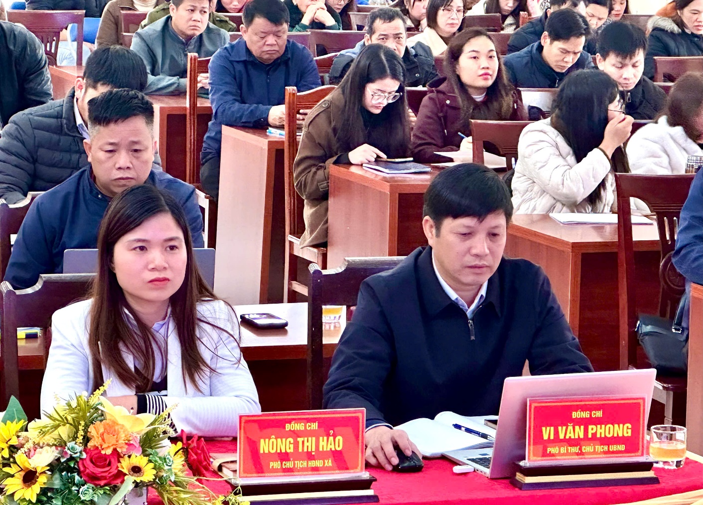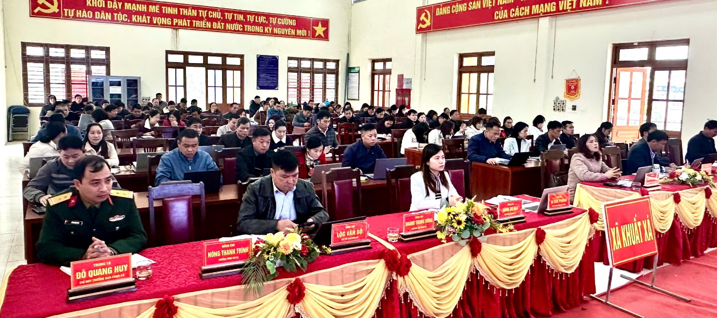 Tham dự hội nghị tại điểm cầu xã có các đồng chí lãnh đạo: Đ/c Vi Văn Phong PBT CT UBND xã; Đ/c Phương Thị Mừng – Phó Bí thư Thường trực Đảng ủy xã; Đ/c Nông Thị Hảo – Phó Chủ tịch HĐND xã, cùng các đồng chí trong Ban Thường vụ Đảng ủy, Ban Chấp hành Đảng bộ, Ủy ban MTTQ xã, đại diện các ban, ngành, đoàn thể và các ban, tổ bầu cử trên địa bàn.