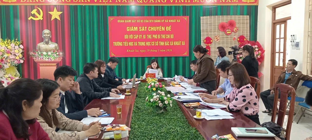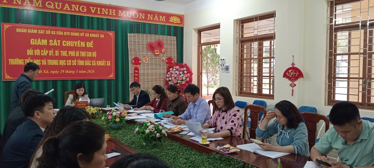 Thực hiện Quyết định số 83-QĐ/ĐU, ngày 13/3/2026 của Ban Thường vụ Đảng uỷ xã Khuất xã về việc thành lập Đoàn giám sát của Ban Thường vụ Đảng uỷ đối với Chi uỷ, Chi bộ và các đồng chí Nông Văn Hình – Bí thư Chi bộ, đồng chí Chu Thị Bộ - Phó Bí thư Chi bộ Trường TH&THCS Tĩnh Bắc, xã Khuất Xá.