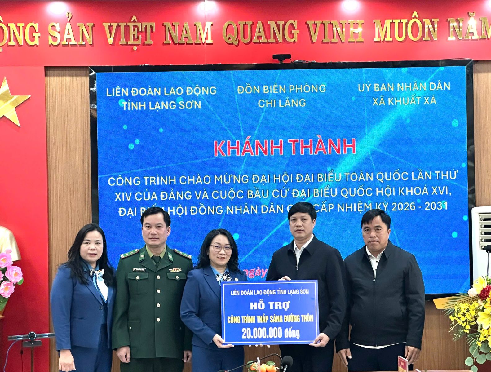Ngày 29/01/20226, Liên đoàn Lao động tỉnh Lạng Sơn phối hợp với Đồn Biên phòng Chi Lăng và UBND xã Khuất Xá tổ chức lễ khánh thành công trình “Thắp sáng đường thôn”, chào mừng Đại hội đại biểu toàn quốc lần thứ XIV của Đảng và cuộc bầu cử đại biểu Quốc hội khóa XVI, đại biểu HĐND các cấp nhiệm kỳ 2026–2031.